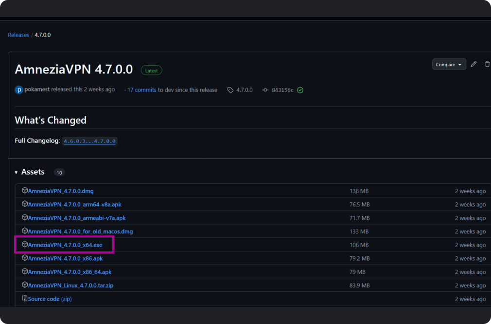 You will be redirected to the GitHub page with the latest release of the application. Find the file in .exe format (this one is for Windows). You can also download the latest version of the application from our website
