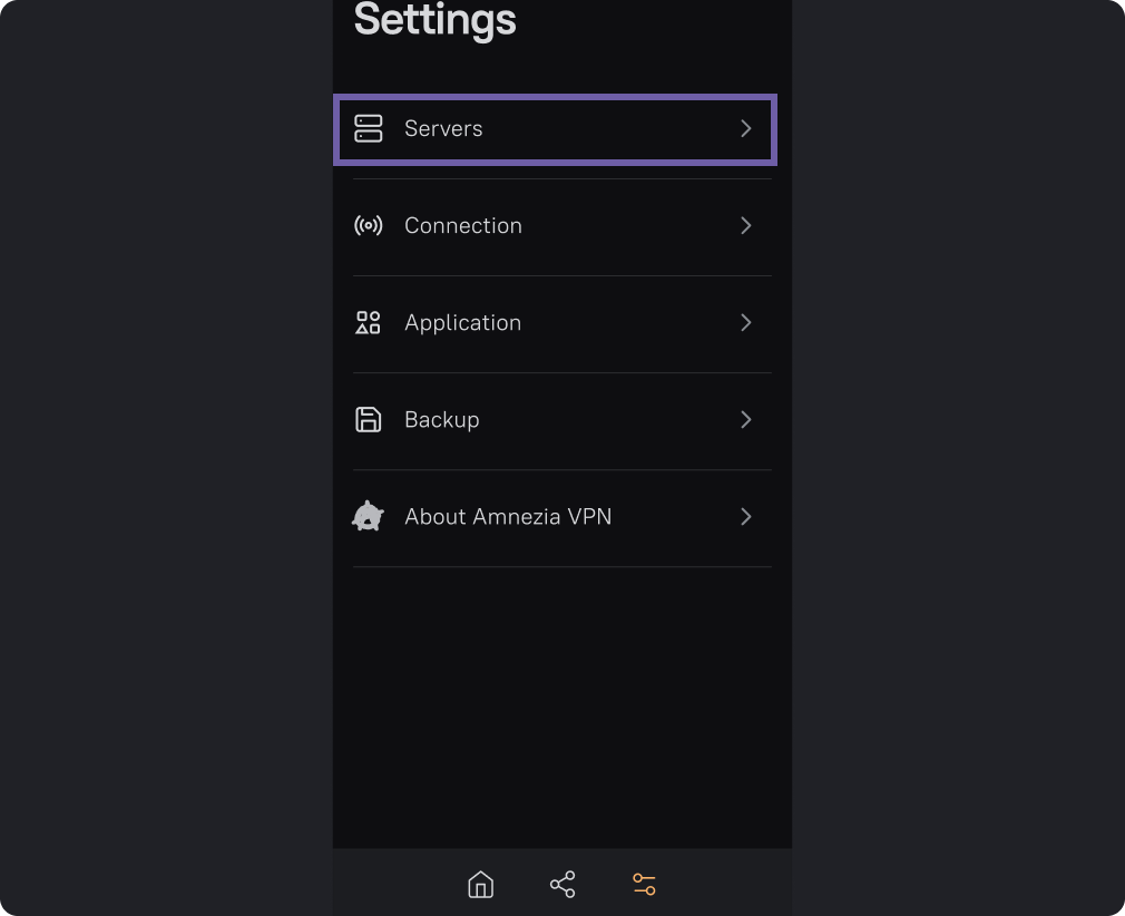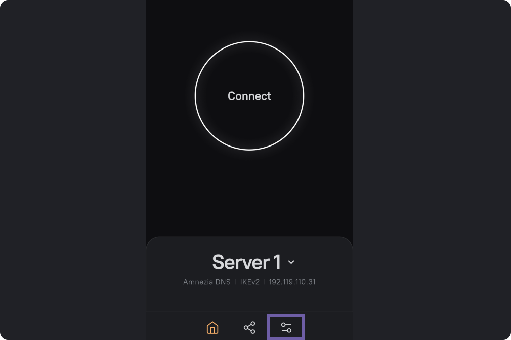In the future you will be able to change your DNS server settings. To do this, open the home screen and click the settings icon in the lower right corner of the application.
