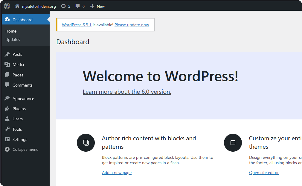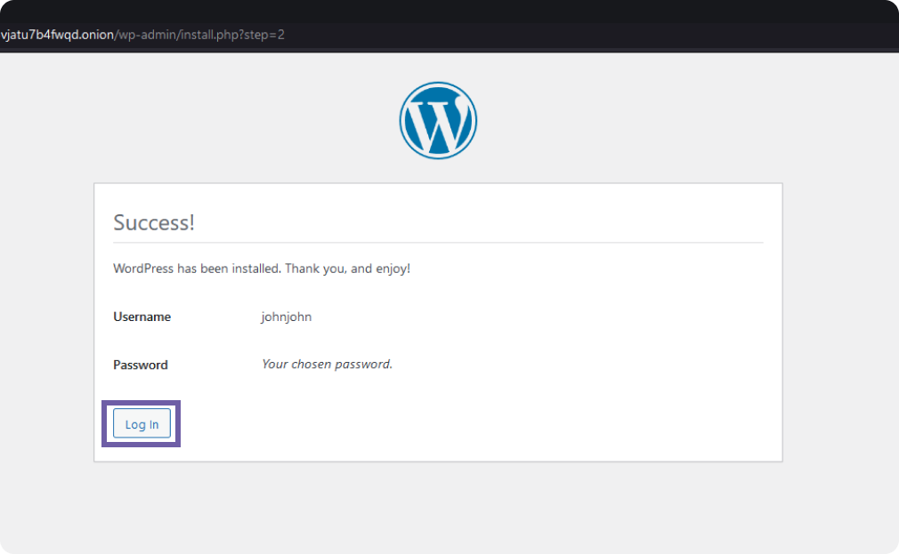Done! You have installed WordPress to create a website on the Tor network. Next, click "Sign in".