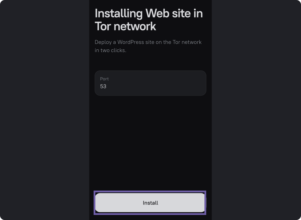 After successful installation you will see the address of the site, it should be copied and pasted into the line of the Tor browser.