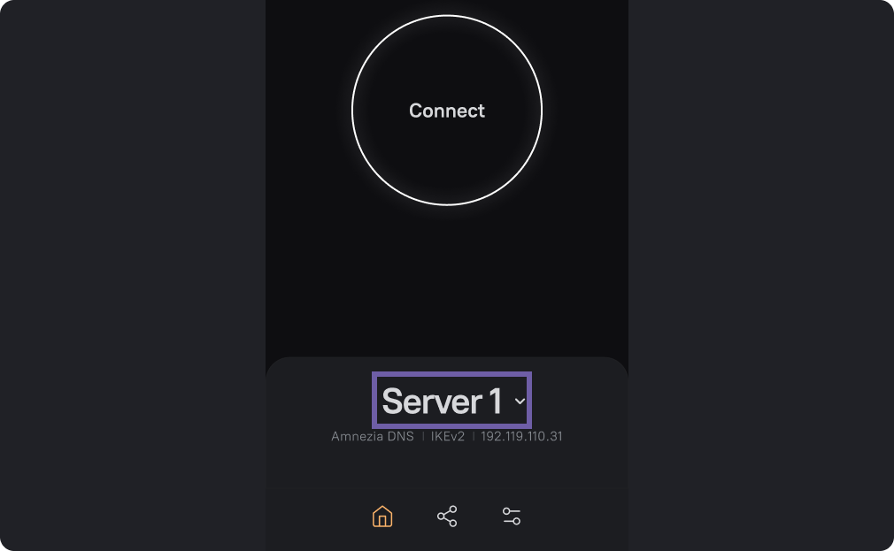 Open the AmneziaVPN home screen.