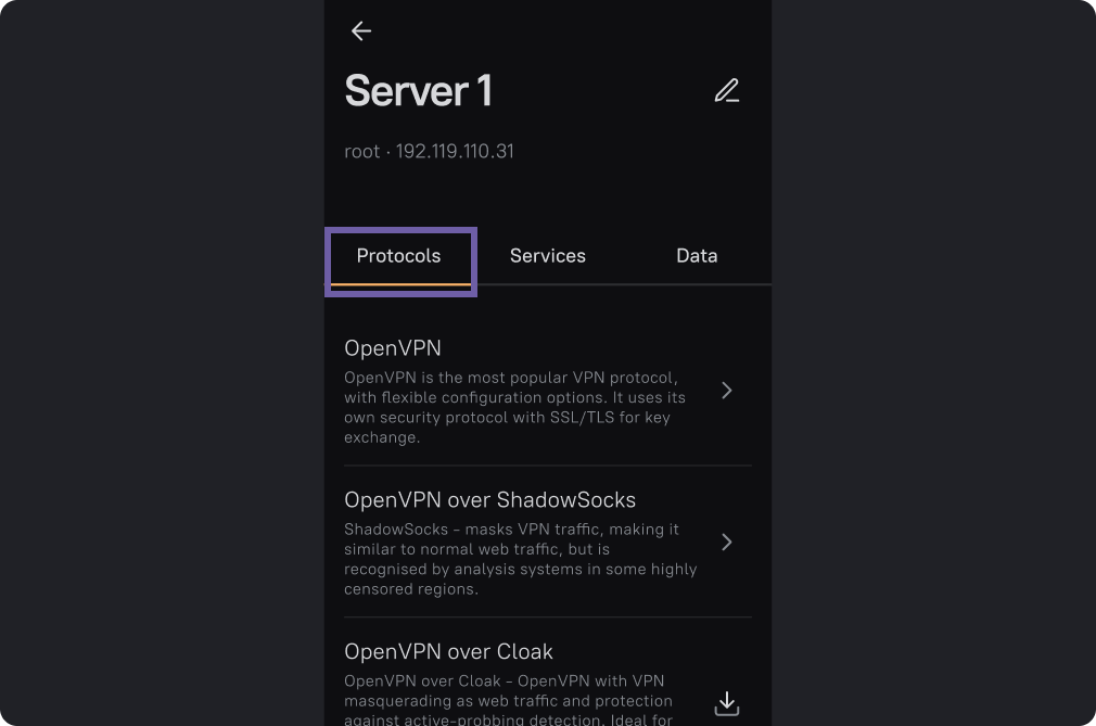 A more detailed description of the protocols can be found in this article. Below is how to install and configure VPN protocols in AmneziaVPN.