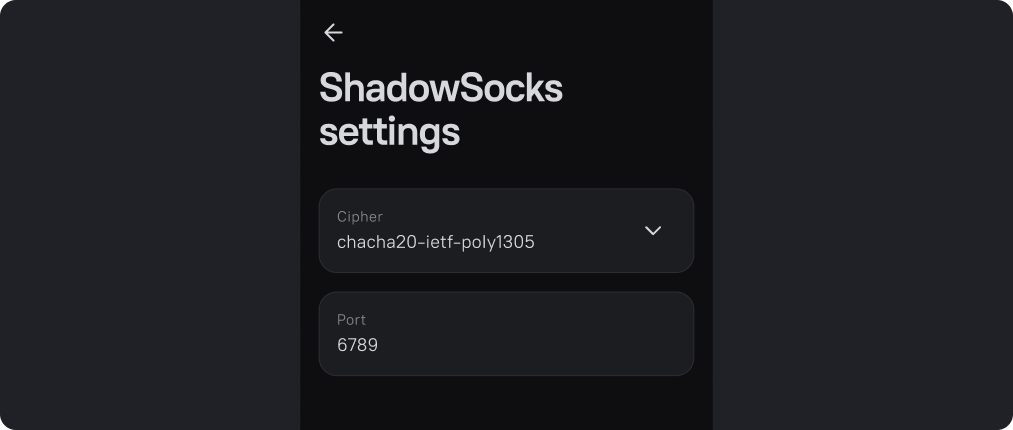 In the Shadowsocks settings, you can change the encryption method and port.