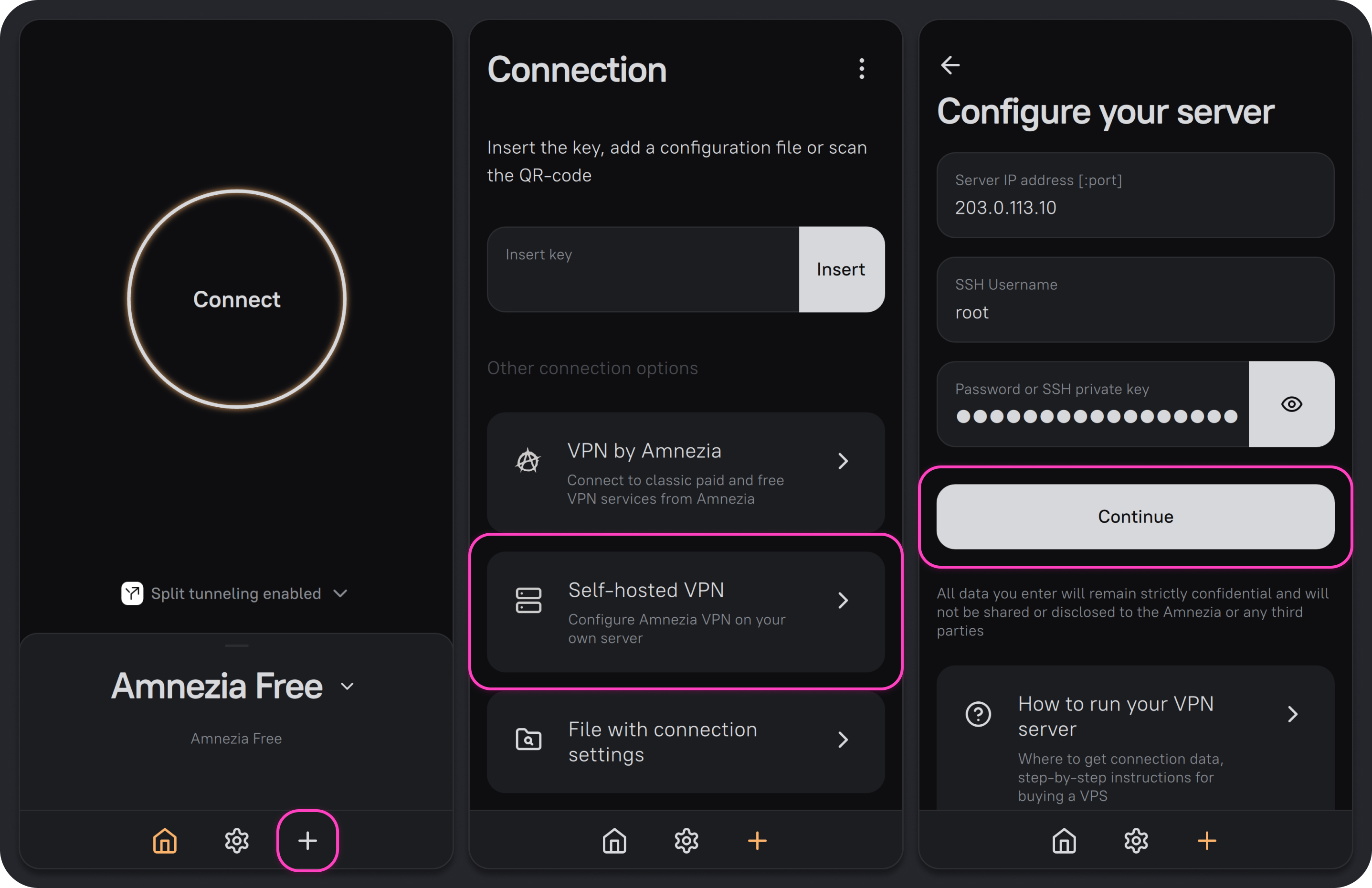 This guide shows you how to install VPN on your own or leased Linux server using the AmneziaVPN app — no terminal or manual commands required.