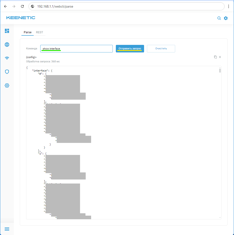 Получившуюся строку нужно вставить в веб-версии командной строки роутера и нажать кнопку Отправить запрос. Если вы ввели правильную команду, ниже будет выведен результат обработки запроса как на приведённом скриншоте.