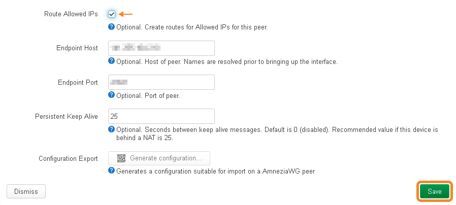 - Check Route Allowed IPs → click Save → click Save again.