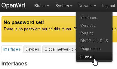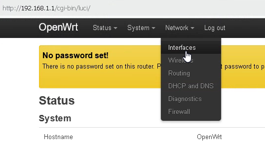 192.168.1.1). - Go to Network → Interfaces.
