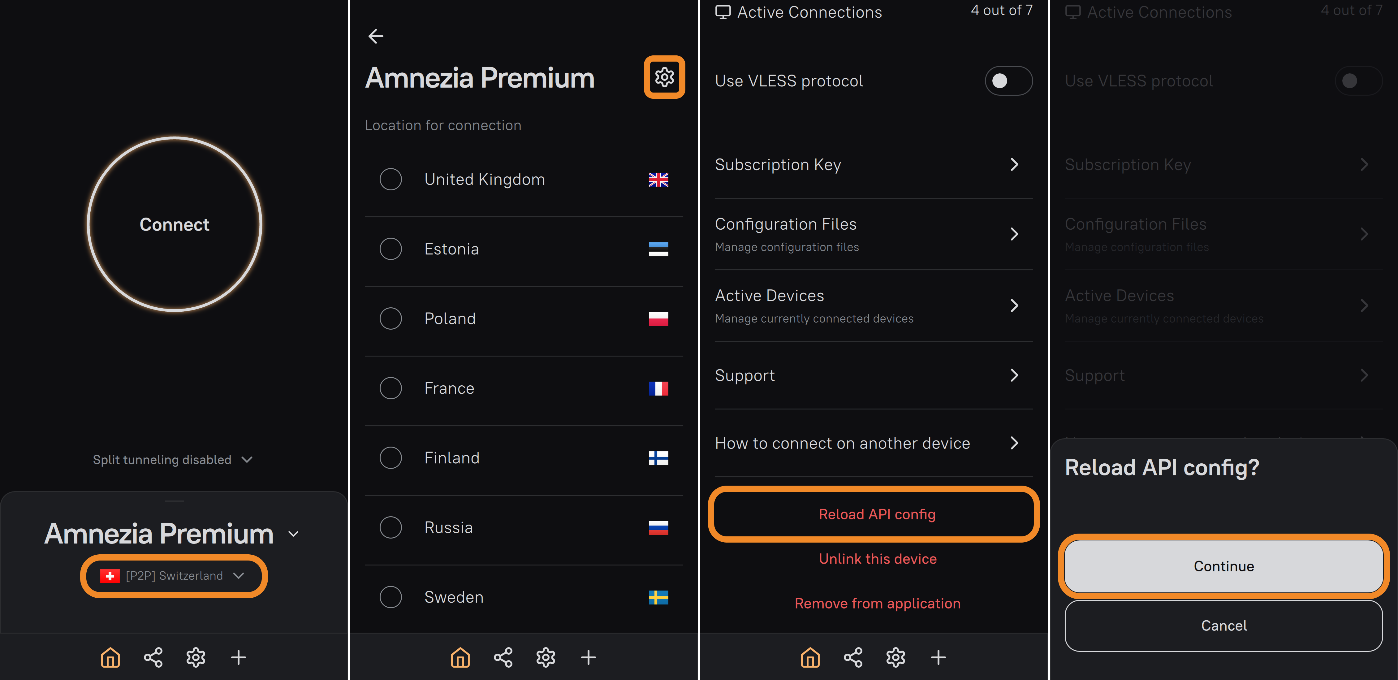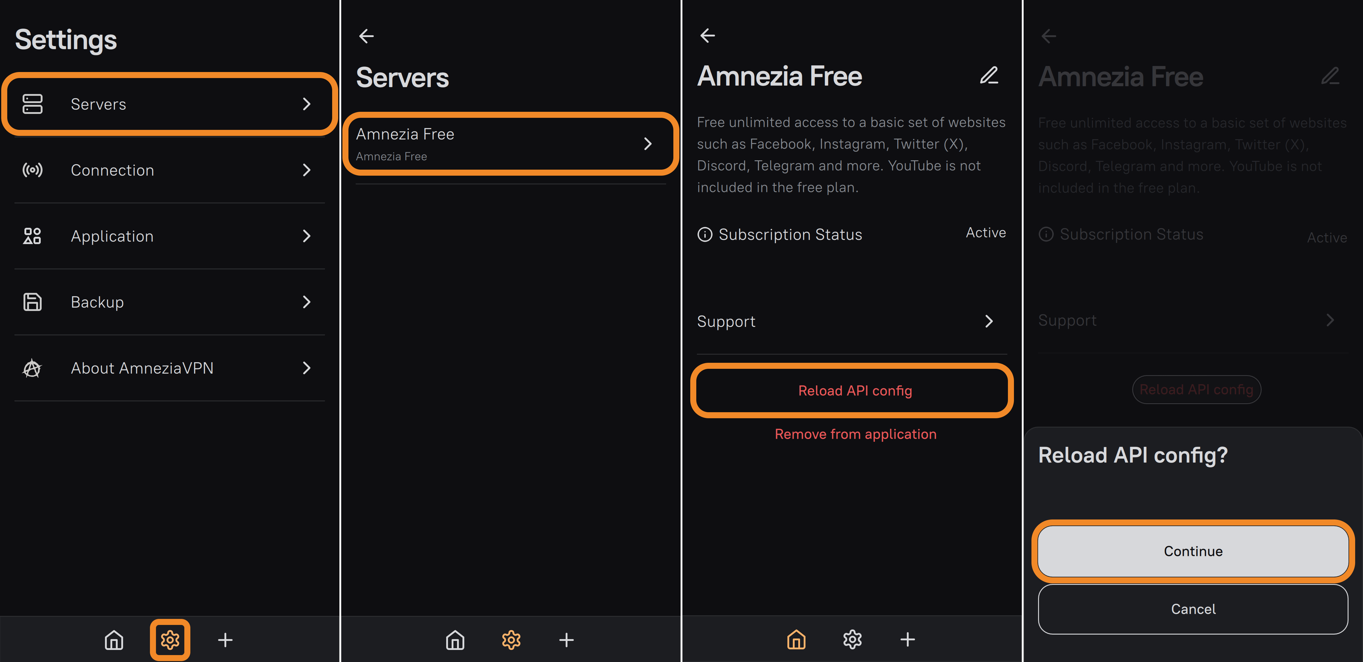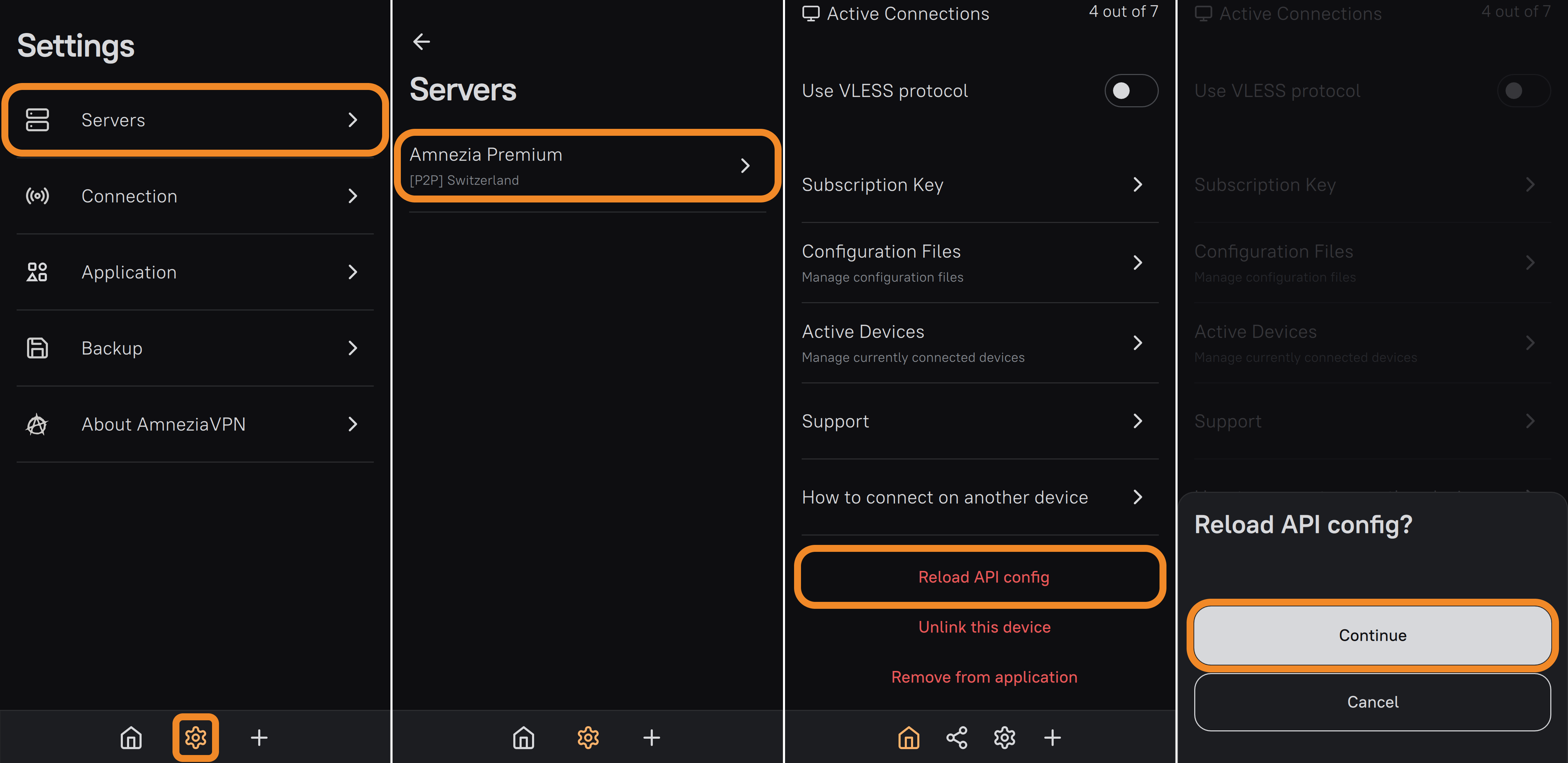 - In the settings section that opens, tap Reload API Configuration, then tap Continue.