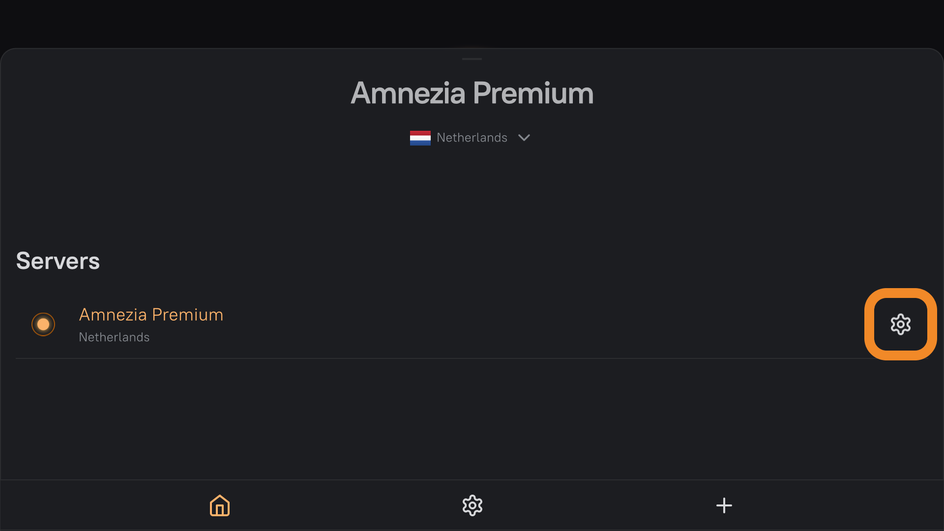 Если у вас возникает проблема с переходом в раздел локаций с главного экрана приложения, нажмите на ваше подключение Amnezia Premium, далее на иконку ⚙️ (шестерёнка) справа от Amnezia Premium — откроется список всех локаций, доступных для подключения.