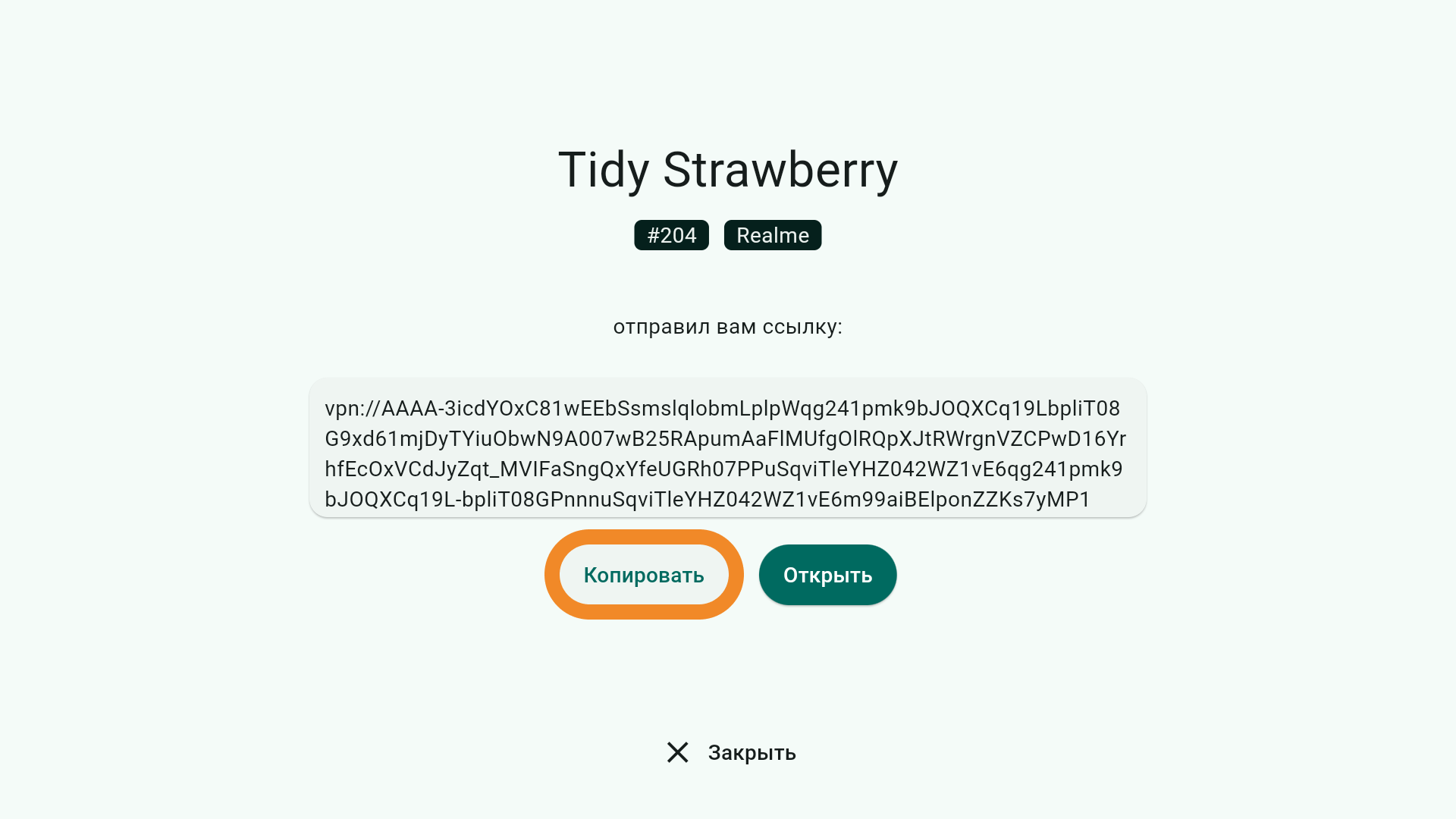- Нажмите кнопку Скопировать — ключ подключения скопируется в буфер обмена.