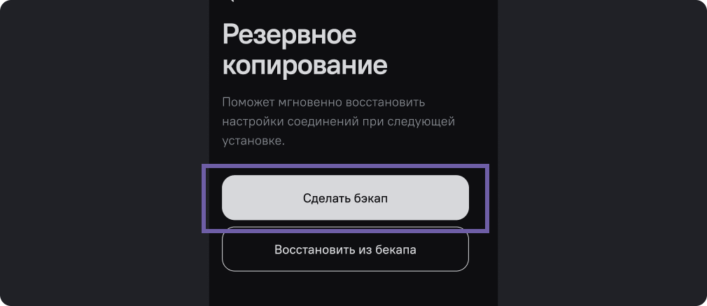 Вы можете сохранить настройки приложения (все подключенные серверы с VPN-протоколами и сервисами) в файл, и позднее восстановить сохранение в любой версии приложения, на любом устройстве.