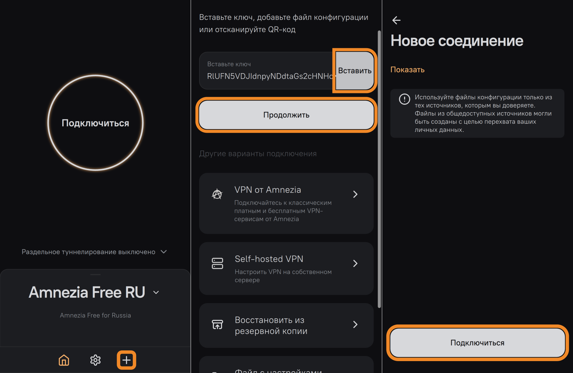 Подключение к Amnezia Free