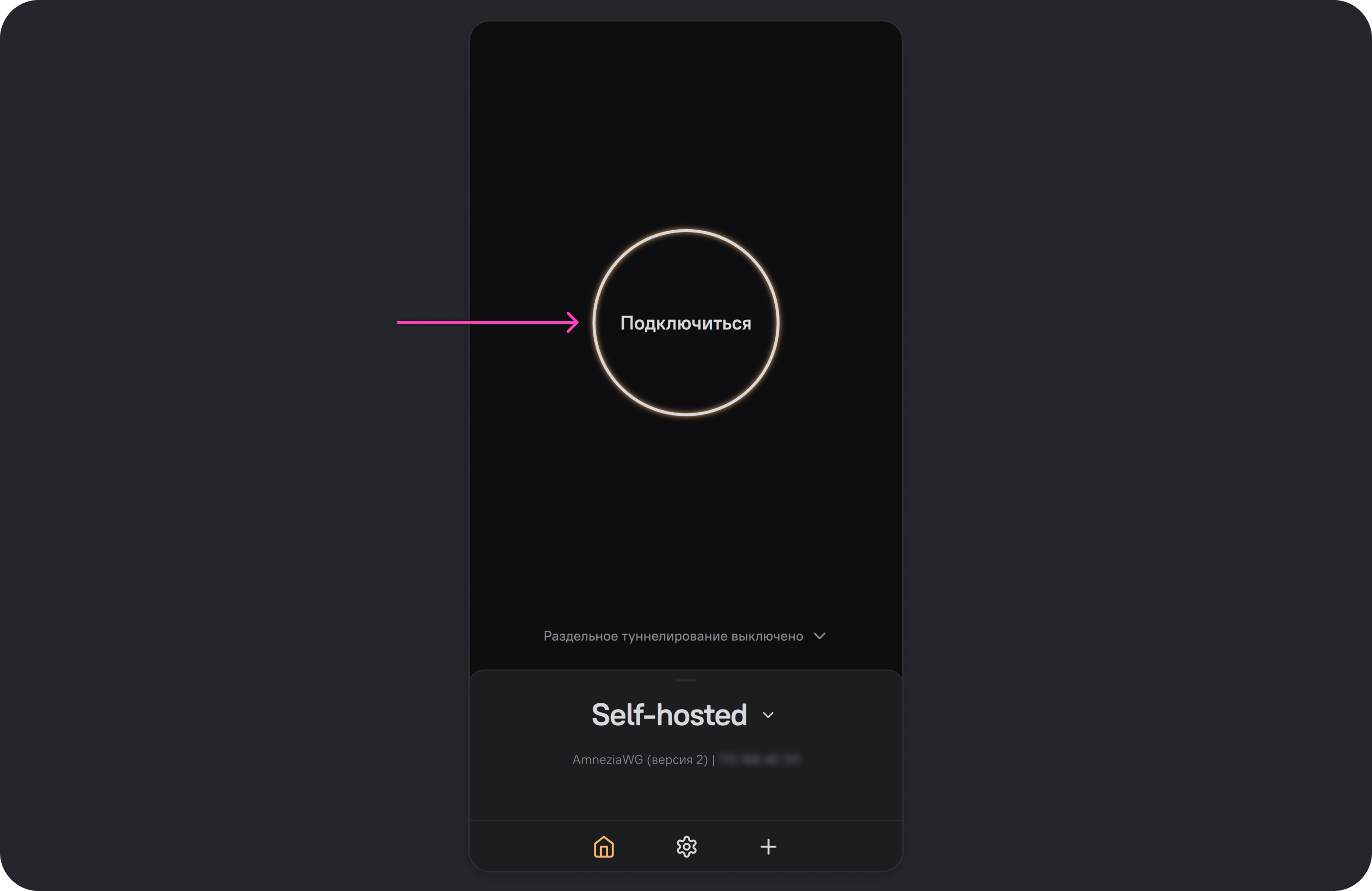 - Откройте приложение AmneziaVPN и нажмите на иконку ➕ (плюс) или на кнопку Приступим, если у вас не было других подключений.