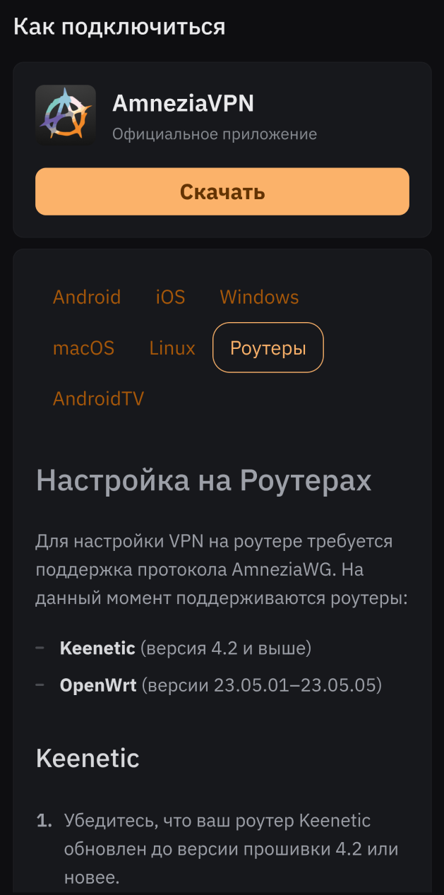- Настроить VPN-подключение на роутере Keenetic или OpenWrt — подписка не ограничивает вас в количестве устройств, которые подключатся к роутеру с настроенным VPN.