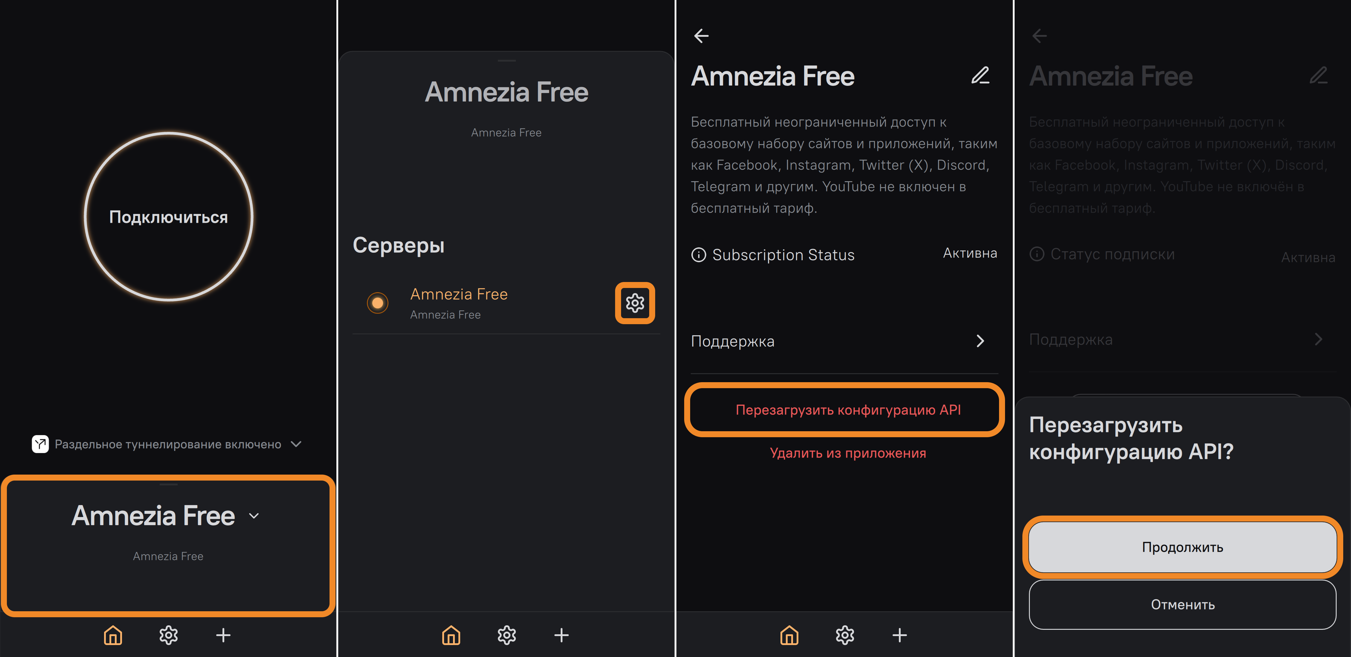 Перезагрузка конфигурации API для Amnezia Free