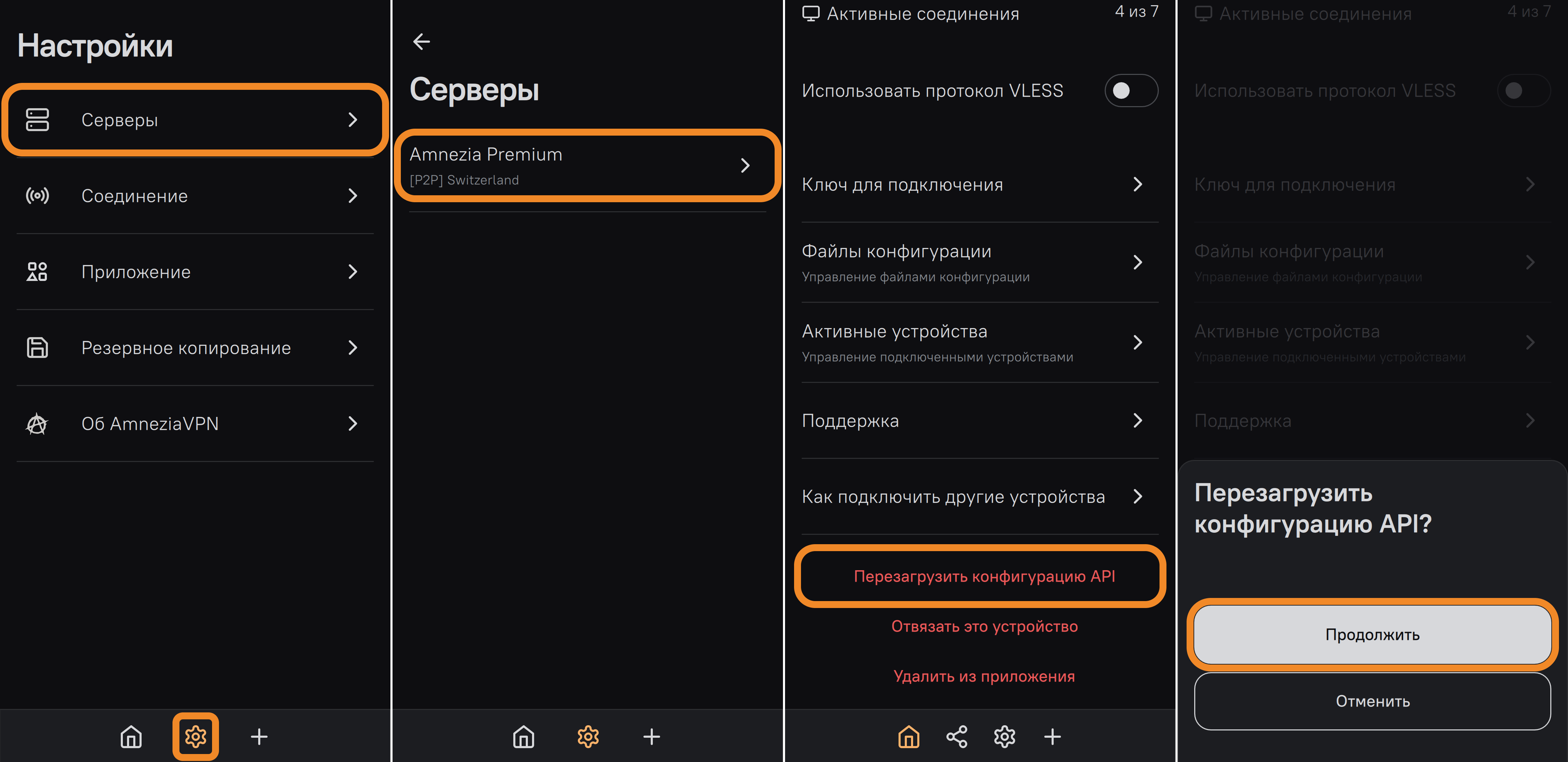Переза грузка конфигурации API для Amnezia Premium