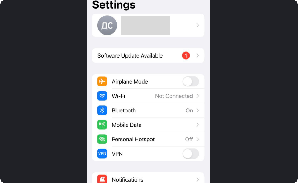Проверьте, чтобы приложению AmneziaVPN были выданы права на передачу Wi-Fi и мобильных данных.