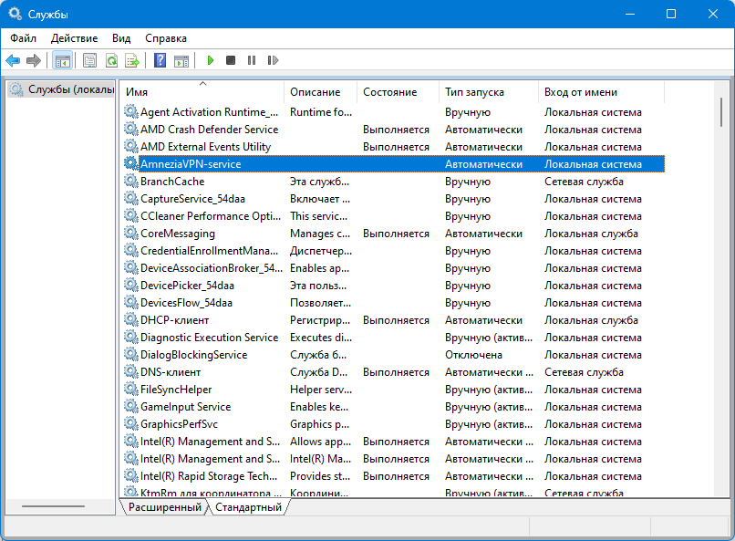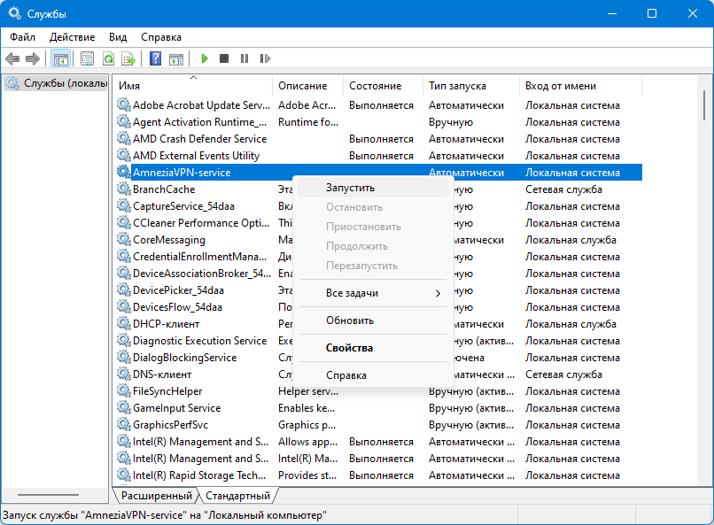 10. Попробуйте запустить службу AmneziaVPN-service из Консоли управления
